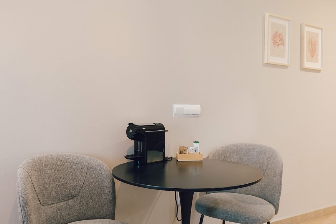 - Cafetera/Tetera con selección de cafés e infusiones de bienvenida